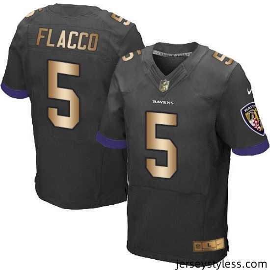 Gorgeous Mens Nike Baltimore Ravens 5 Joe Flacco Elite BlackGold Alternate NFL Jersey to showcase your support