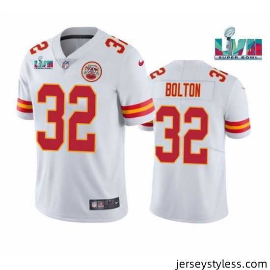 Premium Toddler Kansas City Chiefs 32 Nick Bolton White Super Bowl LVII Patch Vapor Untouchable Limited Stitched Jersey for avid fans