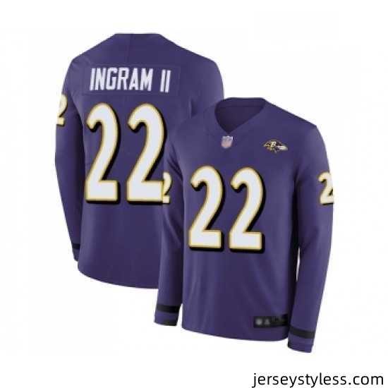 Stunning Baltimore Ravens 22 Mark Ingram II Limited Purple Therma Long Sleeve Football Jersey for avid fans