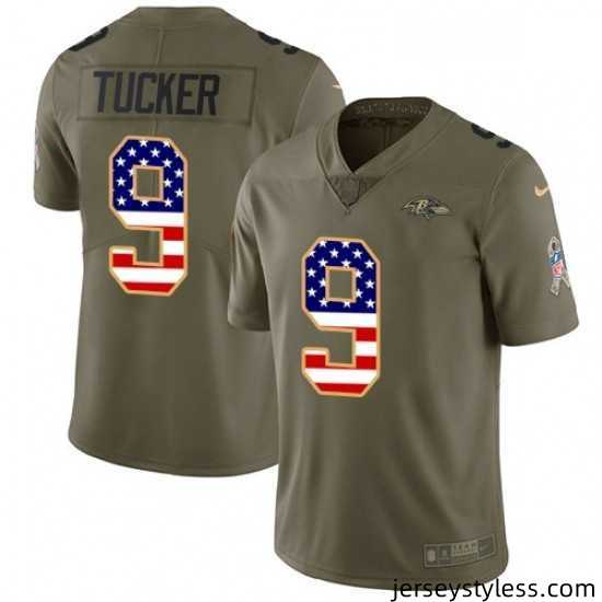 Stunning Nike Baltimore Ravens 9 Justin Tucker Limited OliveUSA Flag Salute to Service NFL Jersey for avid fans