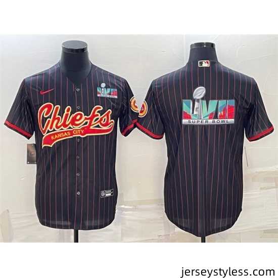 Stylish Kansas City Chiefs Black With Super Bowl LVII Big Logo Cool Base Stitched Baseball Jersey to stand out at the stadium