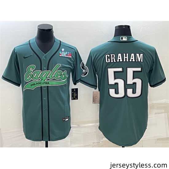 Unique Philadelphia Eagles 55 Brandon Graham Green With Super Bowl LVII Patch Cool Base Stitched Baseball Jersey for avid fans